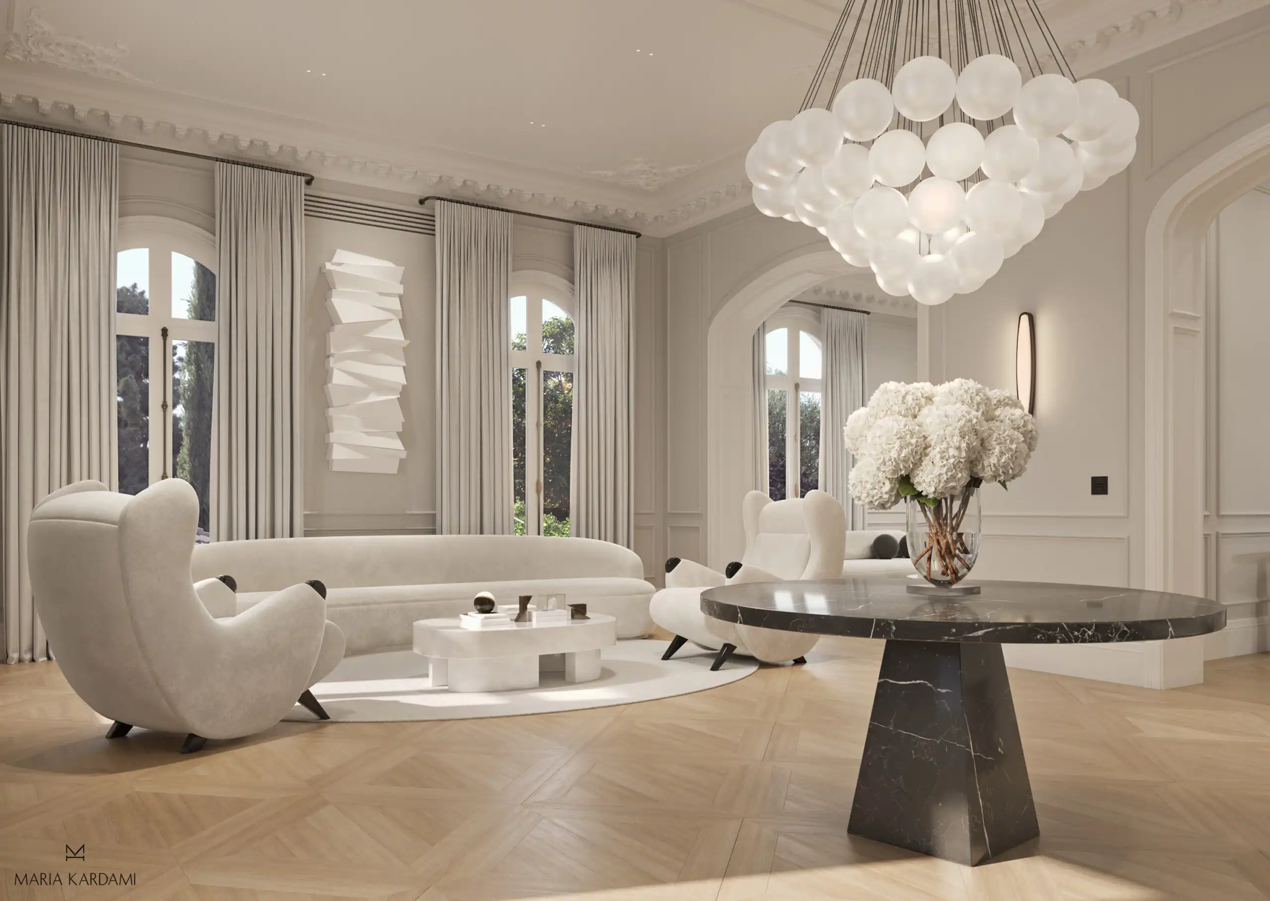 Στο Maria Kardami Design Studio, ειδικευόμαστε στη δημιουργία εξαιρετικών εσωτερικών χώρων που συνδυάζουν άψογα τη διαχρονική κομψότητα με τη σύγχρονη εκλέπτυνση. Σήμερα, είμαστε ενθουσιασμένοι που σας παρουσιάζουμε το νέο μας έργο: The AD Project, μια όαση εσωτερικού σχεδιασμού με διαχρονικό στυλ που δίνει νέα πνοή σε ένα πολυτελές νεοκλασικό σπίτι που βρίσκεται στα Βόρεια Προάστια της Αθήνας.