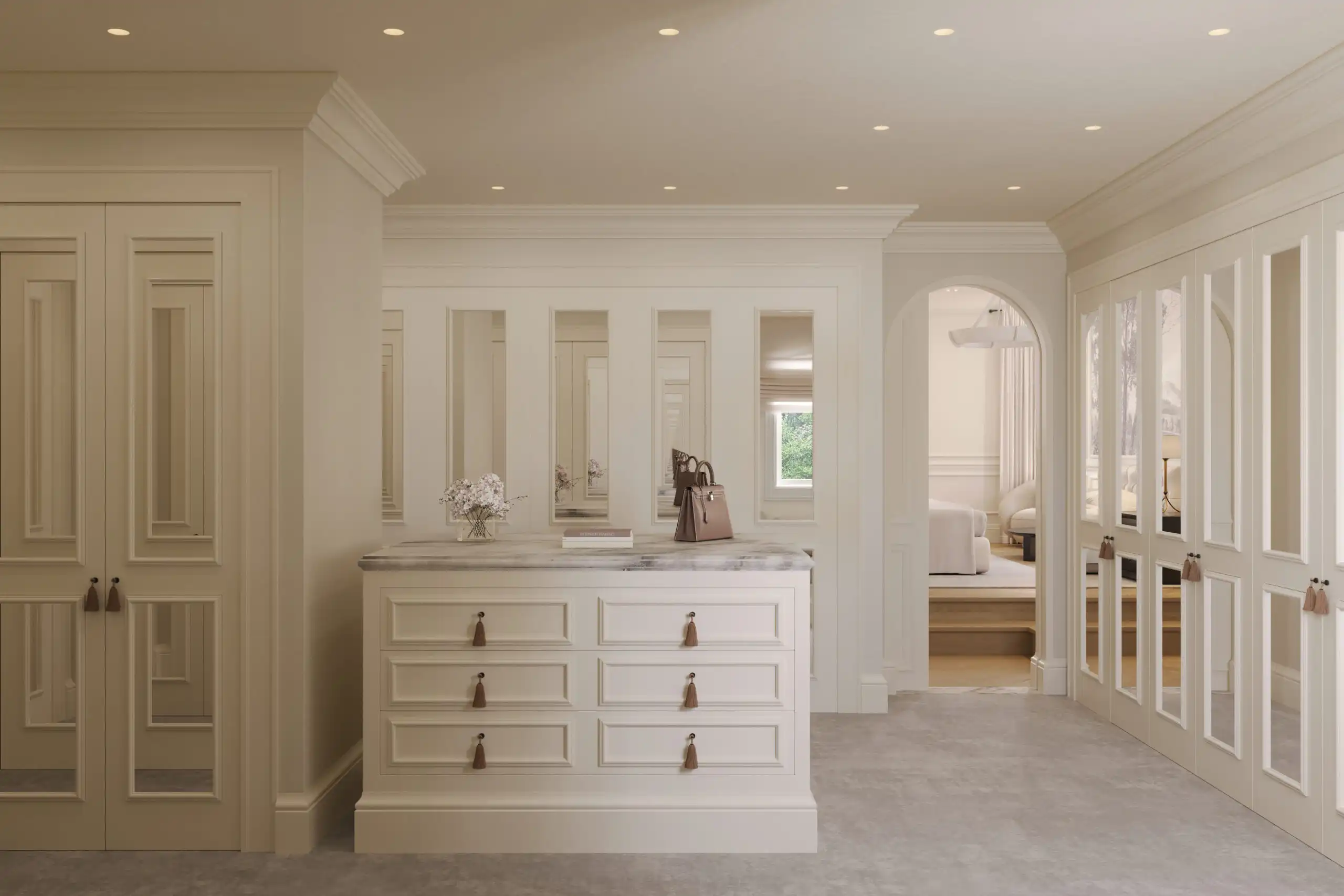 Τα έπιπλα και τα έργα τέχνης θα επιλεγούν με το χέρι για να συμπληρώνουν τη νεοκλασική αισθητική, διασφαλίζοντας ότι κάθε κομμάτι αποτελεί δήλωση εκλεπτυσμένου γούστου. Κάθε γωνιά αυτής της υπέροχης ιδιοκτησίας θα είναι προσεκτικά διακοσμημένη, με μοναδικά κομμάτια επίπλων και αντικειμένων τέχνης, όπως APPARATUS, PIERRE JEANNERET, CHRISTOPHE DELCOURT, UTRECHT BY GERRIT THOMAS RIETVELD, MK STUDIO, RH, KNOLL, DOHENY BY ADAM HUNTER και πολλά άλλα. Πιστεύουμε ακράδαντα ότι όλες οι λεπτομέρειες είναι υπεύθυνες για την αποτύπωση της ουσίας μιας αριστοκρατικής κληρονομιάς, ενώ παράλληλα αγκαλιάζουν τις ανέσεις της σύγχρονης διαβίωσης για μια σύγχρονη οικογένεια.