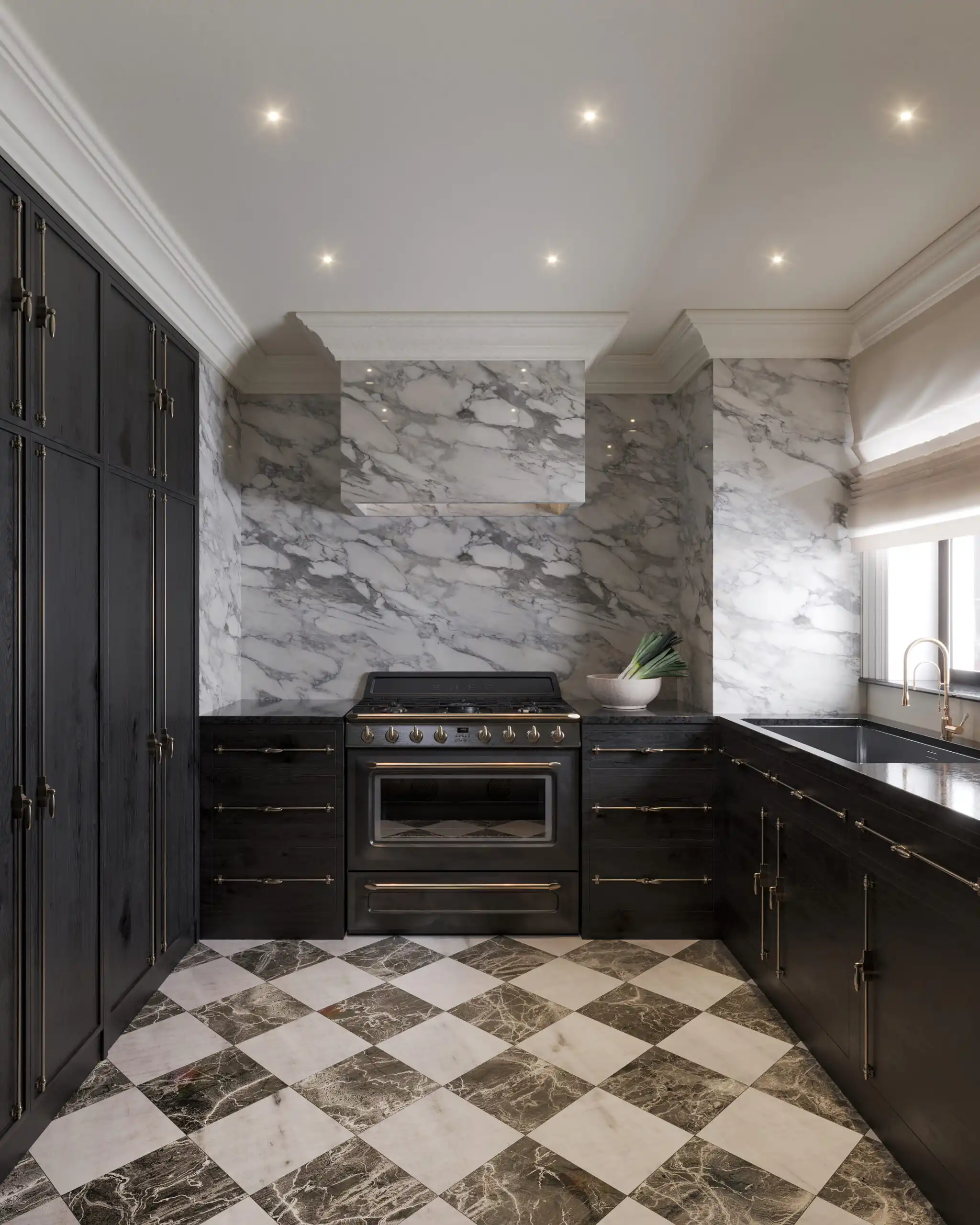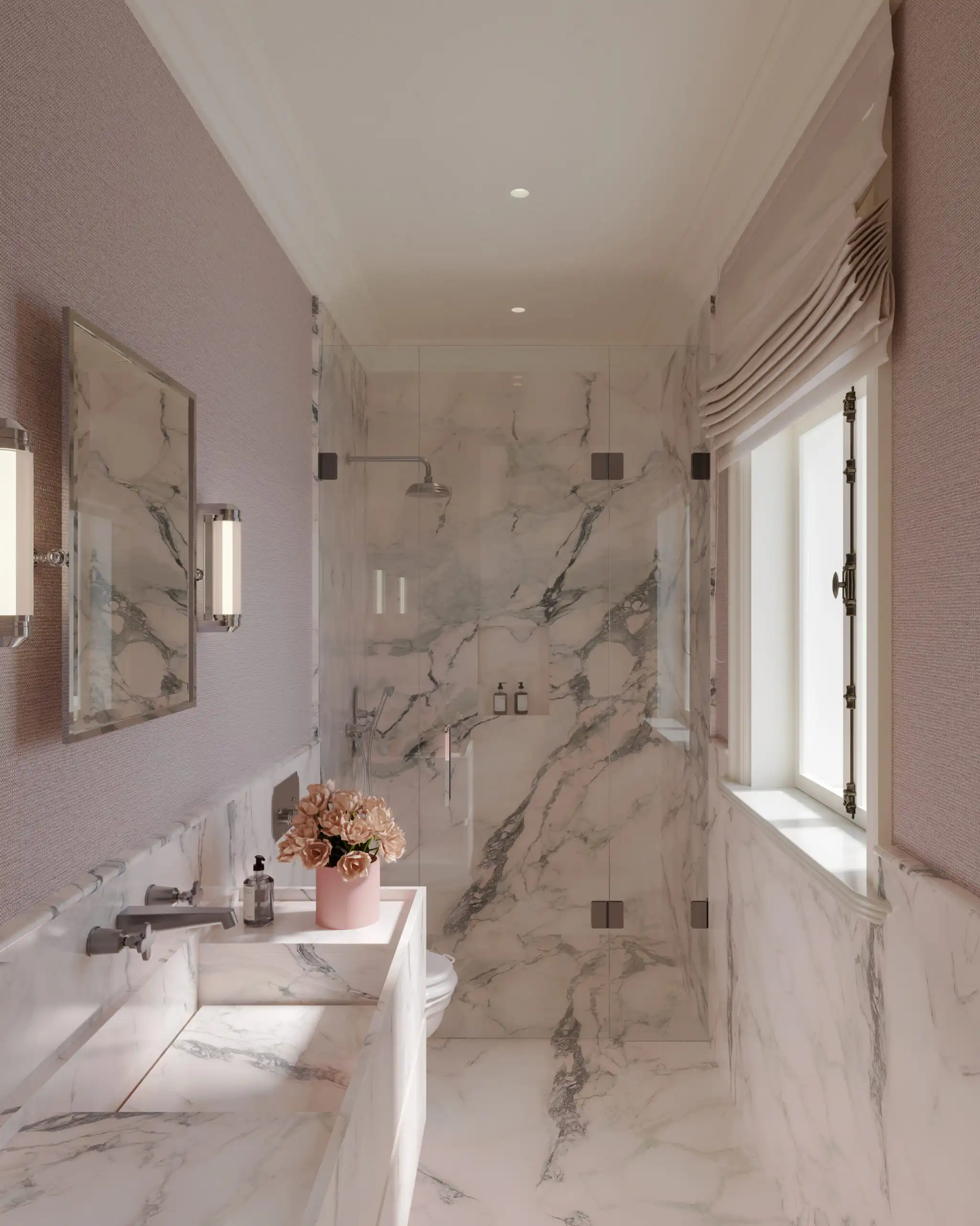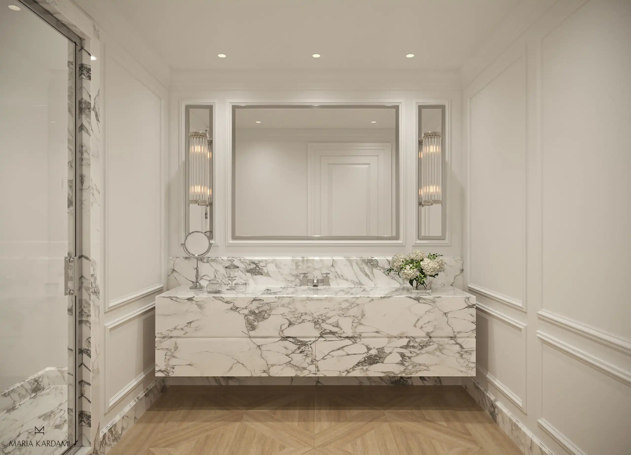 Η προσέγγισή μας σε αυτό το έργο εσωτερικού σχεδιασμού επικεντρώνεται στη σχολαστική προσοχή στη λεπτομέρεια και στην προσεκτικά επιμελημένη επιλογή πολυτελών υλικών. Με τον αληθινό νεοκλασικό τρόπο, σκοπεύουμε να χρησιμοποιήσουμε το πολυτελές μάρμαρο για να αναβαθμίσουμε τον χώρο, προσδίδοντάς του έναν αέρα διαχρονικής κομψότητας. Το ξύλινο δάπεδο chevron, γνωστό για τα περίπλοκα μοτίβα και τη φυσική του ζεστασιά, θα προσδώσει μια πινελιά εκλέπτυνσης σε κάθε δωμάτιο.