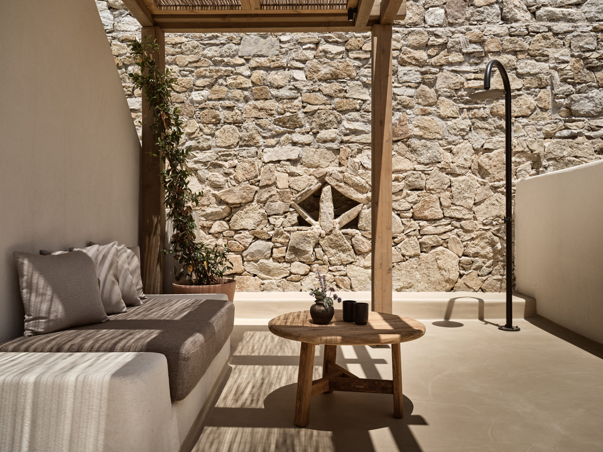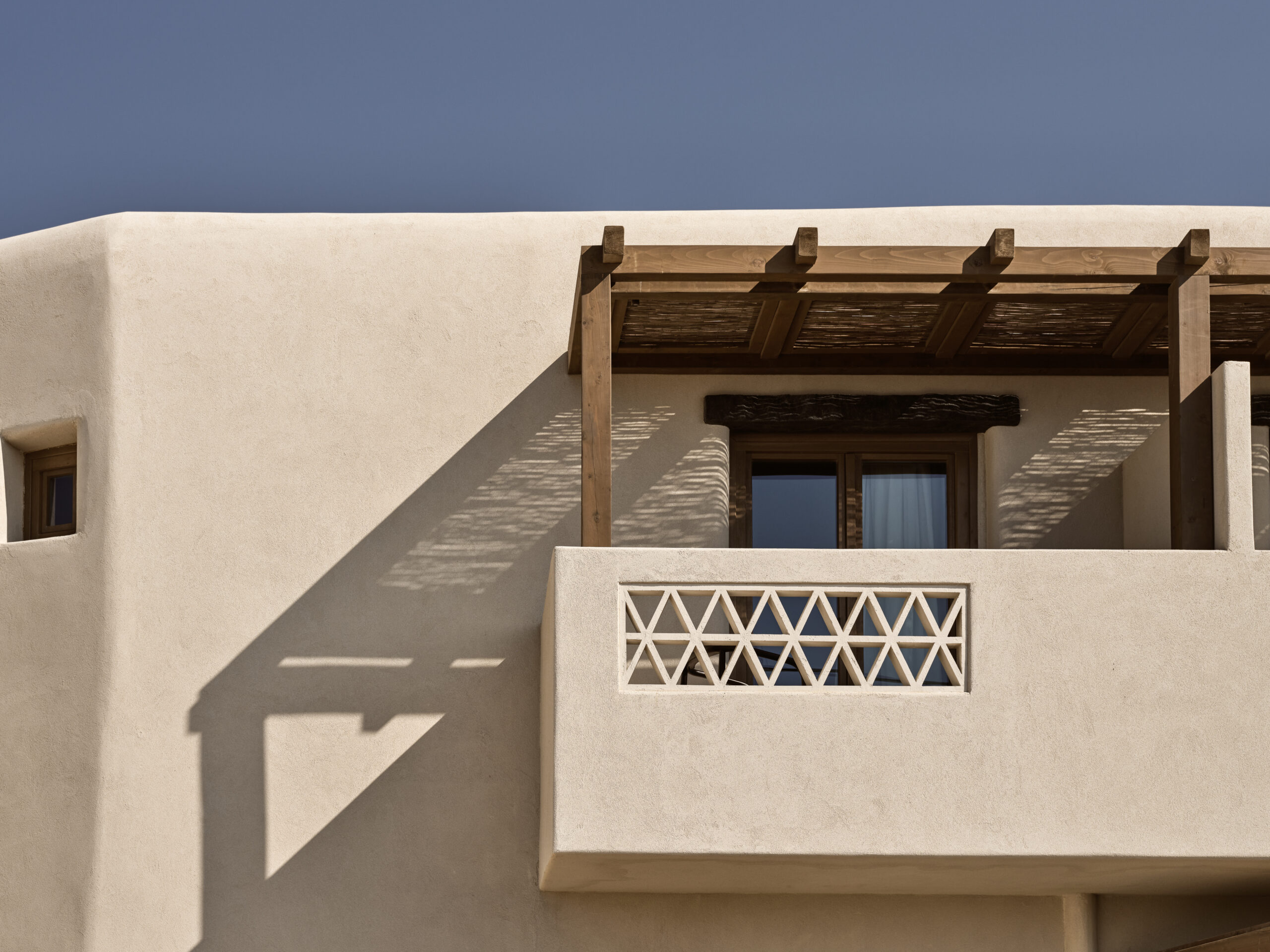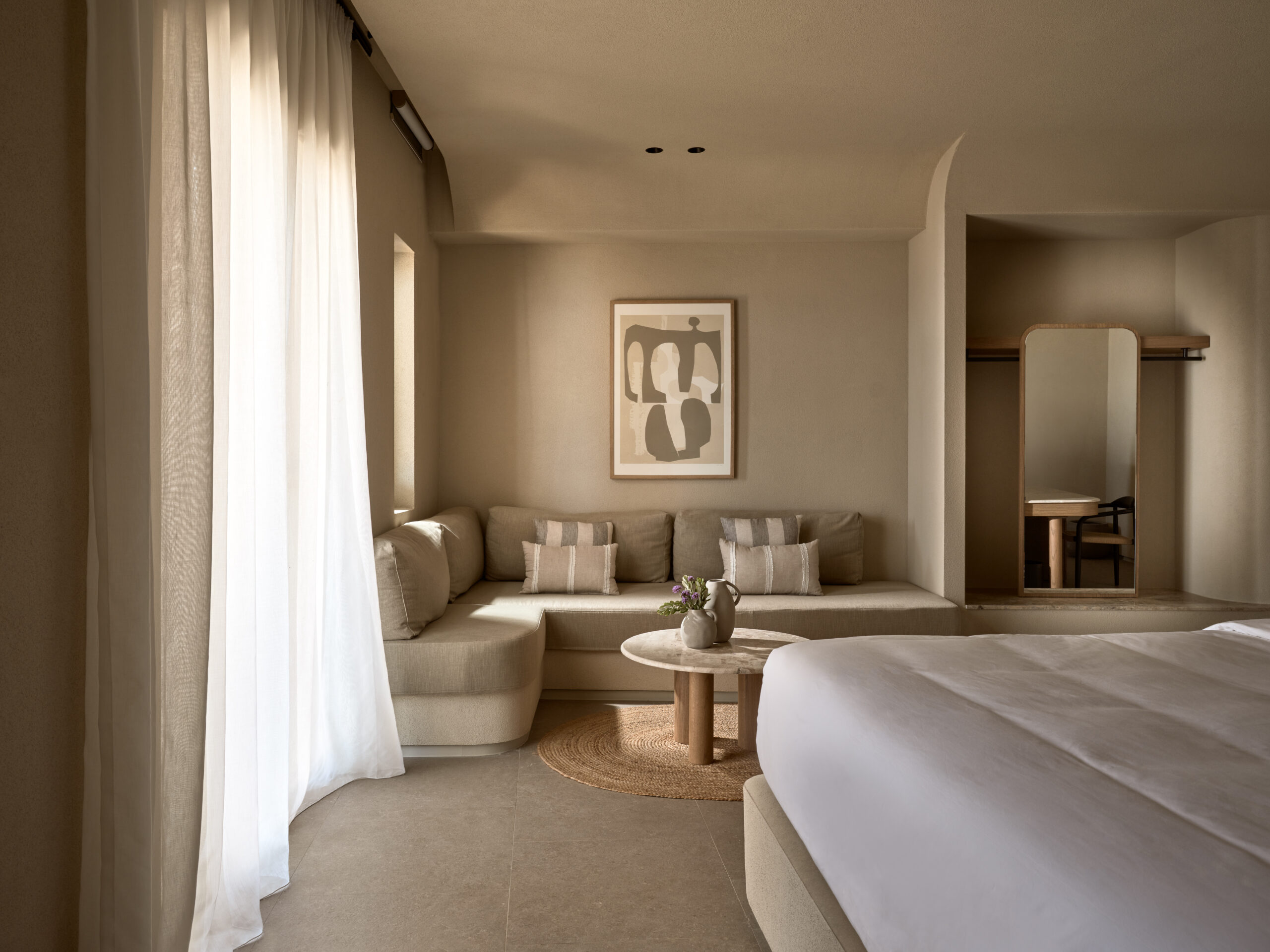 Αρχικά ένα υπάρχον κτίριο στα πρόθυρα της εγκατάλειψης, έχει αναγεννηθεί, διατηρώντας την κληρονομιά του με φυσικά υλικά και απαλές γραμμές. Κάθε δωμάτιο συλλαμβάνει θέες στο Αιγαίο, προάγοντας τη χαλάρωση και τη βραδύτητα.