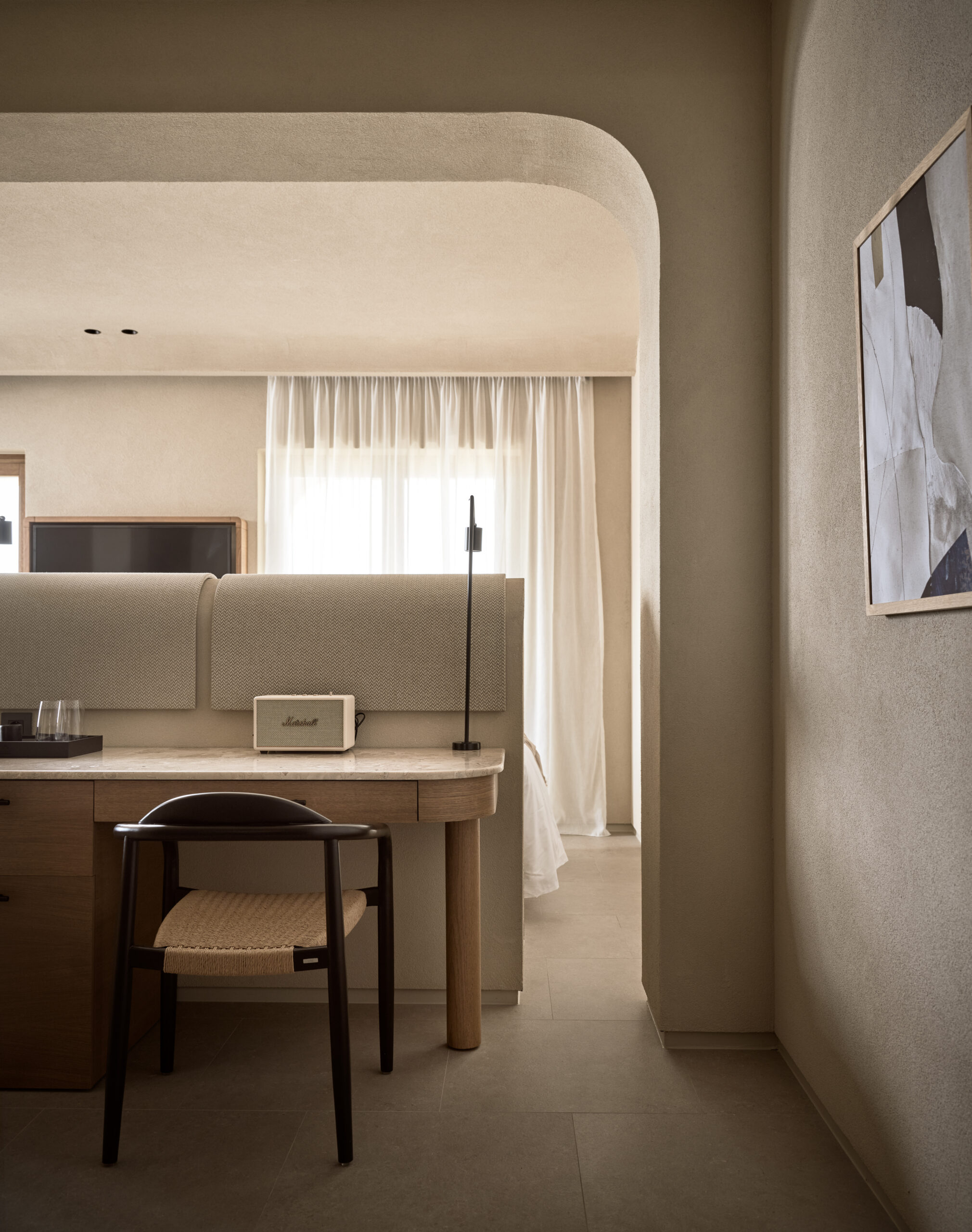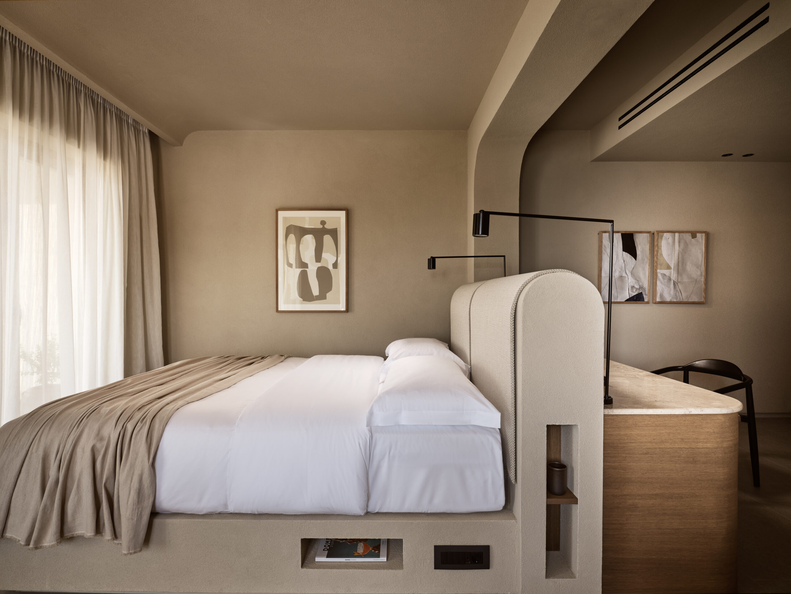 Το φως και οι σκιές ενορχηστρώνονται προσεκτικά, με μεγάλα παράθυρα και ανοίγματα να γεμίζουν τους κοινόχρηστους και ιδιωτικούς χώρους με φυσικό φως, δημιουργώντας βάθος και χαρακτήρα.