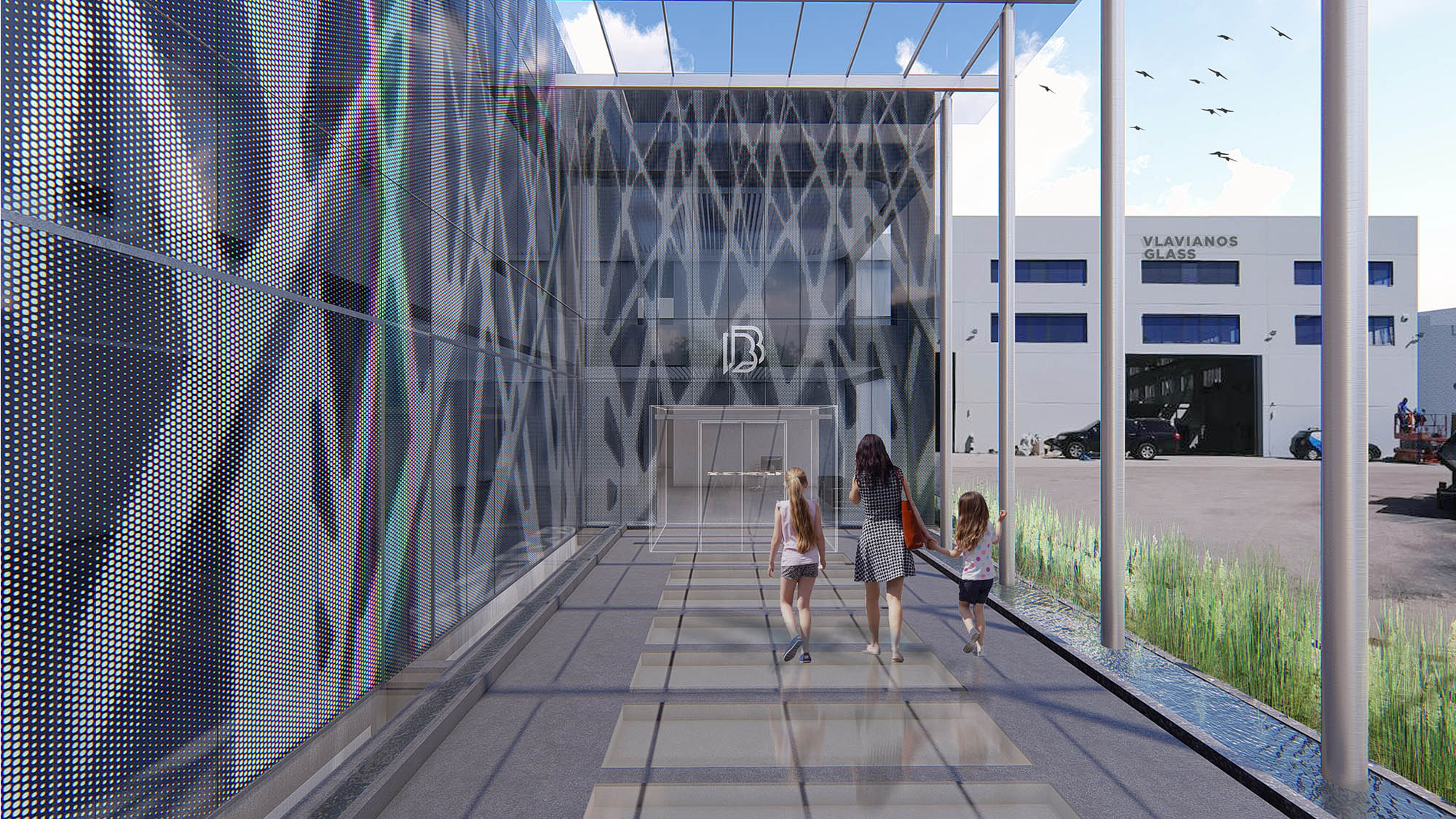 Η ταυτότητα της εταιρείας υαλοπινάκων αποτέλεσε το σημείο εκκίνησης για την ιδέα και καθοδήγησε την ανάπτυξη των σχεδιαστικών ιδεών. Η αρχιτεκτονική των νέων γραφείων και του εκθεσιακού χώρου στοχεύει να αναδείξει το κτίριο ως ένα “έκθεμα” από μόνο του, δημιουργώντας ένα δυναμικό κτίριο που αποτελείται από πολλαπλές γυάλινες κατασκευές.